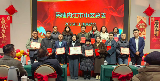 2026年2月6日,民建内江市中区总支部召开2025年度工作总结会。民建内江市委会专职副主委潘容、秘书长严梅,市中区政协副主席刘澜出席会议。会议由总支部主委徐晓辉主持。