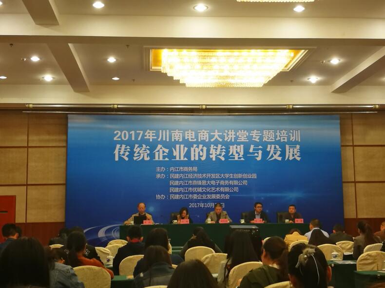 2017年10月27日上午,川南电商大讲堂在内江飘香园林会议中心举办,市商务局、民建市委等单位领导出席会议,专家学者、企业家代表、青年业务骨干等上百人济济一堂。特邀专家电子科技大学侯伦教授为与会人员作了主题为《新电子商务模式对旧模式的冲击》的精彩讲授。侯教授旁征博引,结合日常生活体验,以丰富有趣的多媒体手段,带领大家感受到了新经济的独特魅力。与会人员纷纷表示大开眼界,启迪思维,收获颇丰。(民建内江市委机关 何其杭)
