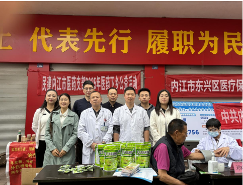 2025年4月25日,民建内江市医药支部联合内江市中医医院脊柱骨二科,脾胃脑病科,康复二科及内江市东兴区医疗保障局在内江市东兴区双才镇开展2025年“医药下乡公益活动”。