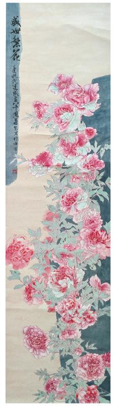随风摇曳的姿态展现民建人与中国共产党风雨同舟,团结奋斗的昂扬风貌。作品介绍:作品为庆祝中国民主建国成立80周年创作的中国传统花鸟画,以传统笔墨为形,时代精神为魂,盛世繁花的自然意向与民建光辉历程紧密融合,簇拥的花朵象征历经八十年风雨而愈加坚毅长青的政治生命力。