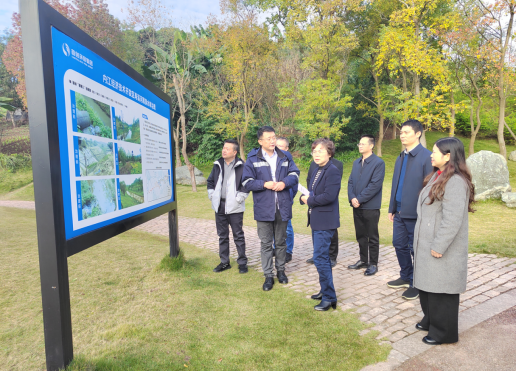 在经开区寿溪河湿地公园, 四川水汇生态环境治理有限公司相关负责人引导调研组沿着蜿蜒的骑行道与徒步道实地察看,并就寿溪河黑臭水体整治项目进行详细介绍。通过讲解、察看、交流等方式,调研组真切感受到内江在黑臭水体整治方面成效明显。曾经垃圾堆积、淤泥堵塞的寿溪河,通过生态修复工程,如今已变成水清岸绿的复合型生态空间,成为市民娱乐休闲健身的欢乐场。调研组一行认为寿溪河黑臭水体整治模式为城市近郊生态治理提供了可借鉴的实践样本。
